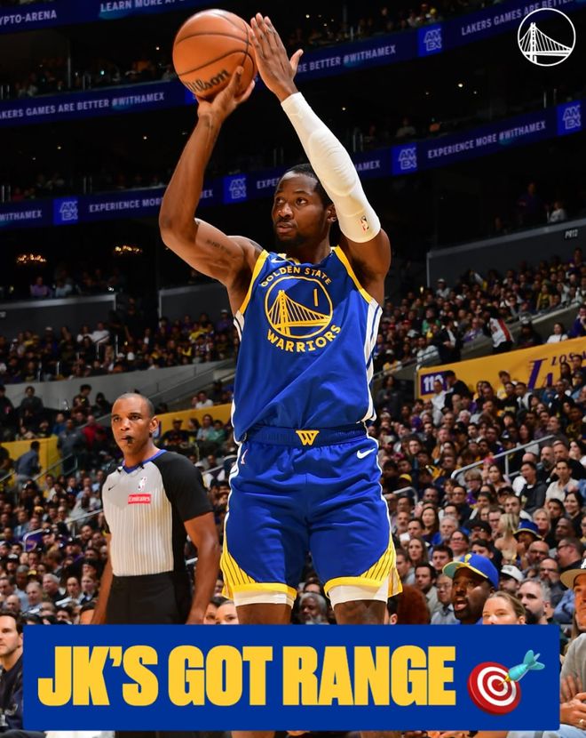 北京时间10月22日,狈叠础揭幕战,勇士以119-109大胜湖人。此役库明加还是先发,虽然他深陷交易流言当中,季前赛也发挥的不好,可这场比赛的第叁节他单节5中5帮助勇士拉开分差,全场比赛也打出全面的数据。