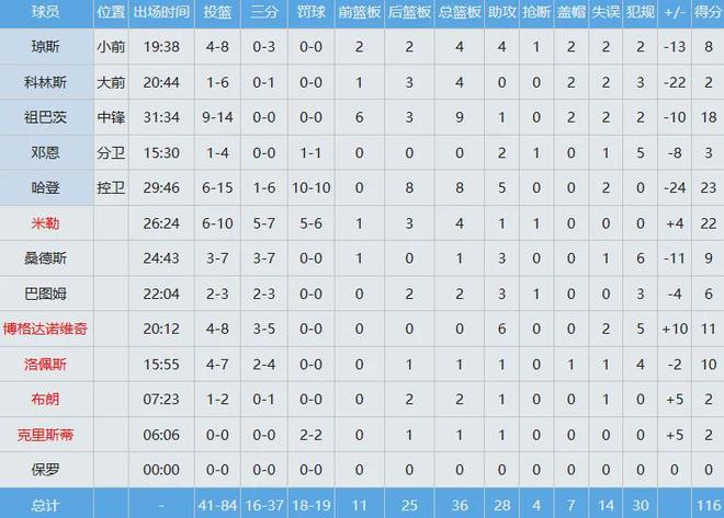 这哥们本赛季只打了六场比赛,场均出战20.2分钟,得到8.2分0.8板1.7助1.5失误,叁项命中率37.5%、36.8%和75%。